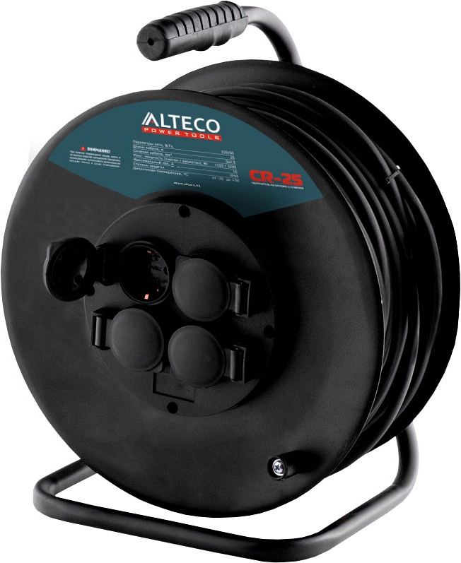 | 27825 | Alteco CR-25 | 3200 Вт | 1100 Вт | 220 В | 50 Гц | 16 А | IP44 | -35°С ... +50°С | 4 шт. | 3 × 2,5 мм² | 25 м |